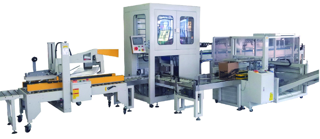 يحتوي النظام على 3 آلات مع ناقل الأسطوانة المتصلة. هم الكرتون erector، آلة اختيار الكرتون والكرتون، السداد الكرتون وناقل الكرتون الأسطوانة. يتم تحميل الكرتون الورق على كرتون موركت، وكان أسفل الكرتون مختومة مع الشريط. ثم ترسل الكرتون المشكلة إلى آلة اختيار ووضع الكرتون. يتم التقاط الزجاجات من الناقل ووضعها في الكرتون بواسطة وحدة مكنسة كهربائية. الكرتون الكامل يرسل إلى السداد الكرتون لتكون مختومة الشريط.