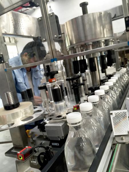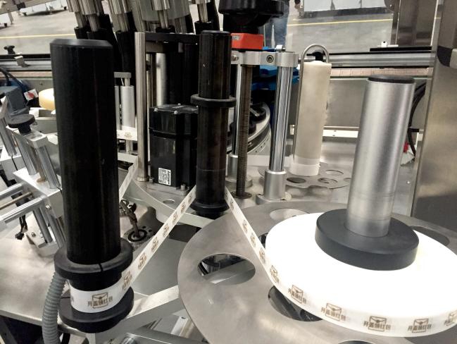 مادة التسمية هي BOPP. يذوب الجهاز يذوب الجسيمات الغراء أولا، وقد امتص ملصق BOPP على طبل الفراغ بعد التغذية والقطع من الأسطوانة Bale، عندما تمر زجاجة الحيوانات الأليفة طبل الفراغ، تم رش الغراء الذائب الساخن على الملصق، وكانت التسمية عصا على جسم زجاجة، الزجاجة المسمى إرسال إلى الخطوة التالية. السعة المتاحة هي 10000bph، 18000bph، 24000bph، 36000bph.